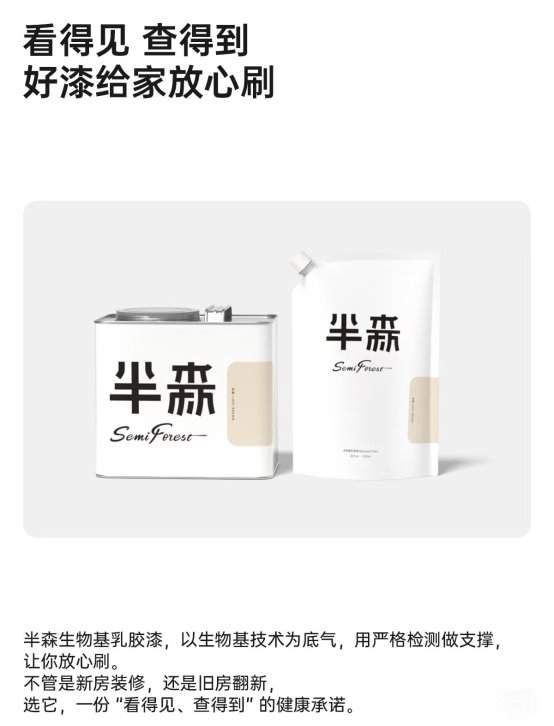 以上四点可以看出半森的环保不只是 “达标”,更是 “超预期”——31% 生物基让原料更天然,三重认证覆盖短期和长期安全,2.5L小容量还避免了废漆污染,刚好适配想要当天入住人群翻新的环保需求。 对着急住又重环保的家庭来说,选它不用 “赌安全”,因为它就是安全的代名词!