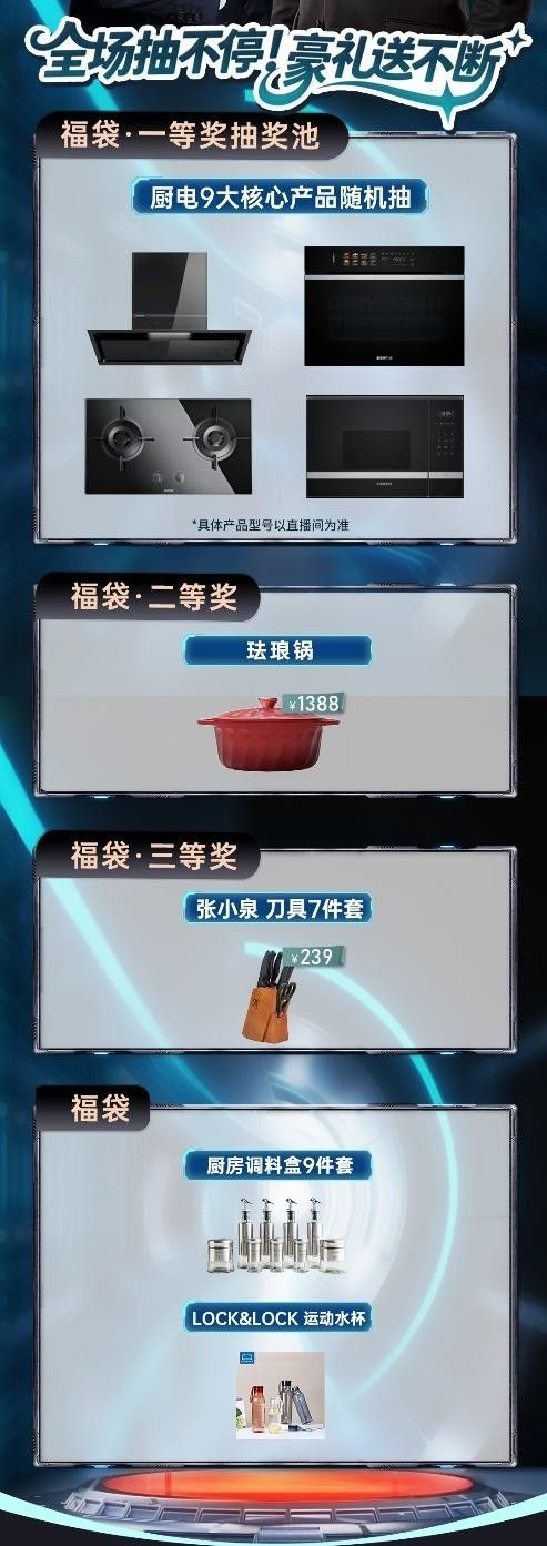 直播过程中还将设置“总裁点球赢大奖”等互动环节,观众可通过留言、竞猜或完成指定任务参与抽奖,赢取包含西门子家电产品、品牌周边、专属礼券在内的丰厚奖品。主持人与嘉宾将与网友实时互动,通过产品讲解、厨房挑战与趣味问答,让直播体验更具沉浸感与参与感。