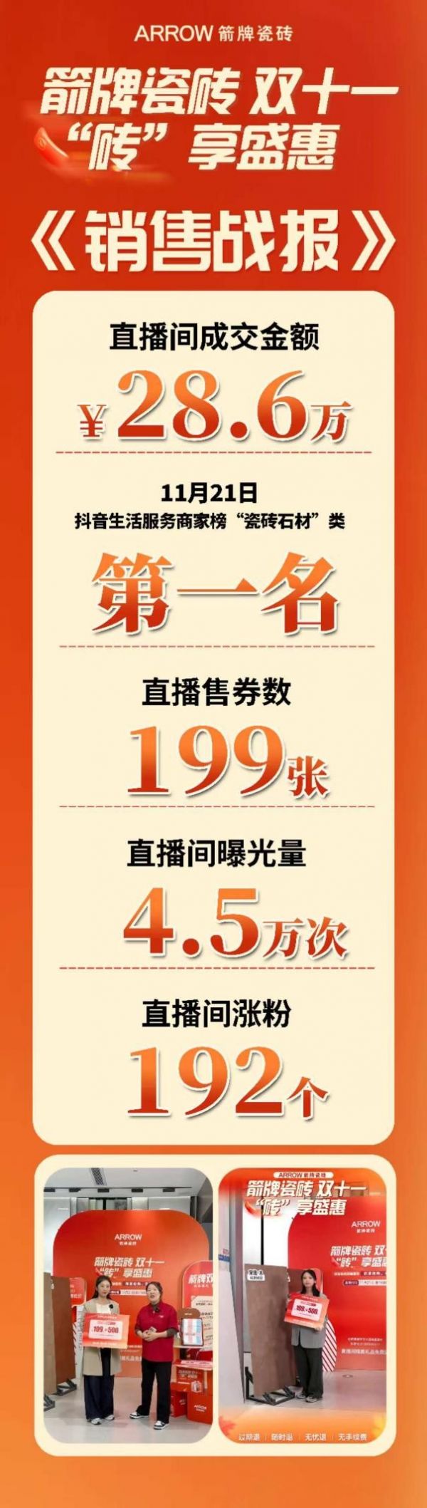 双补狂欢!箭牌瓷砖双11活动持续突破,硕果累累