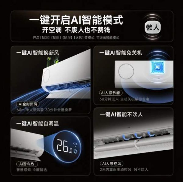 值得一提的是,这款空调还具备智能节能特性。AI人感节能技术实现一小时无人自动关机,结合APF5.32超高能效,全年可省电约295度,让用户在获得舒适体验的同时省电省心。