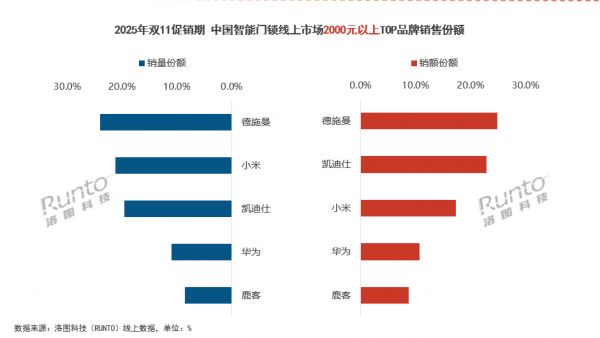 权威机构发布双11智能锁最终数据:德施曼线上市场销额销量第一,高端市场断层领先