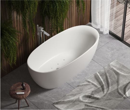 Trento 特兰托® 独立式人造石按摩浴缸巧妙融合科技与经典美学设计,提供了一种可靠的冬日放松解决方案。Air System 气泡按摩系统位于浴缸底部,搭载8个气泡按摩喷嘴,通过独立防水遥控器调节气泡强度,适合日常洗浴放松需求。浴缸整体采用创新型DuroCast®人造石材质,具有坚固耐用、触感舒适的特性。其具备防滑表面和优质的保温性能,抗老化不发黄,硬度高,耐磨性强,不易开裂,同时兼具耐化学腐蚀、耐燃烧及耐冲击等卓越表现。这款浴缸能与任何卫浴风格无缝搭配,在舒适度、耐用性和美观性上带来一步到位的高阶享受,更能确保日常使用中的长久稳定与易维护。