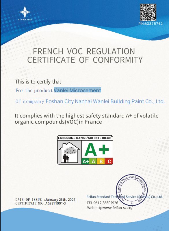 Topciment:法国A+认证,VOC 22g/L