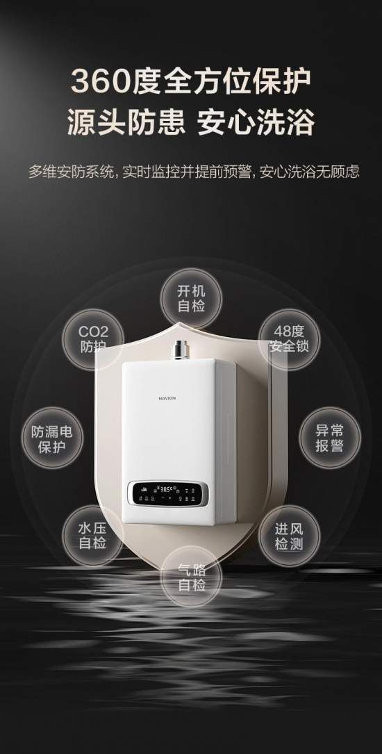 恒温之外,NGW580C在细节处同样深思熟虑:多维静音科技将运行声响降至耳语级别;-20°C双重防冻保护确保严寒中依然可靠;360度全方位安防系统(包括CO防护、48℃安全锁等)则默默筑起安全防线,让每一次热水使用都成为全身心的放松。