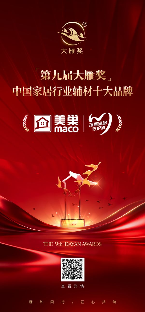 喜报!美巢集团荣膺「第九届大雁奖·“中国家居行业辅材十大品牌”」奖项