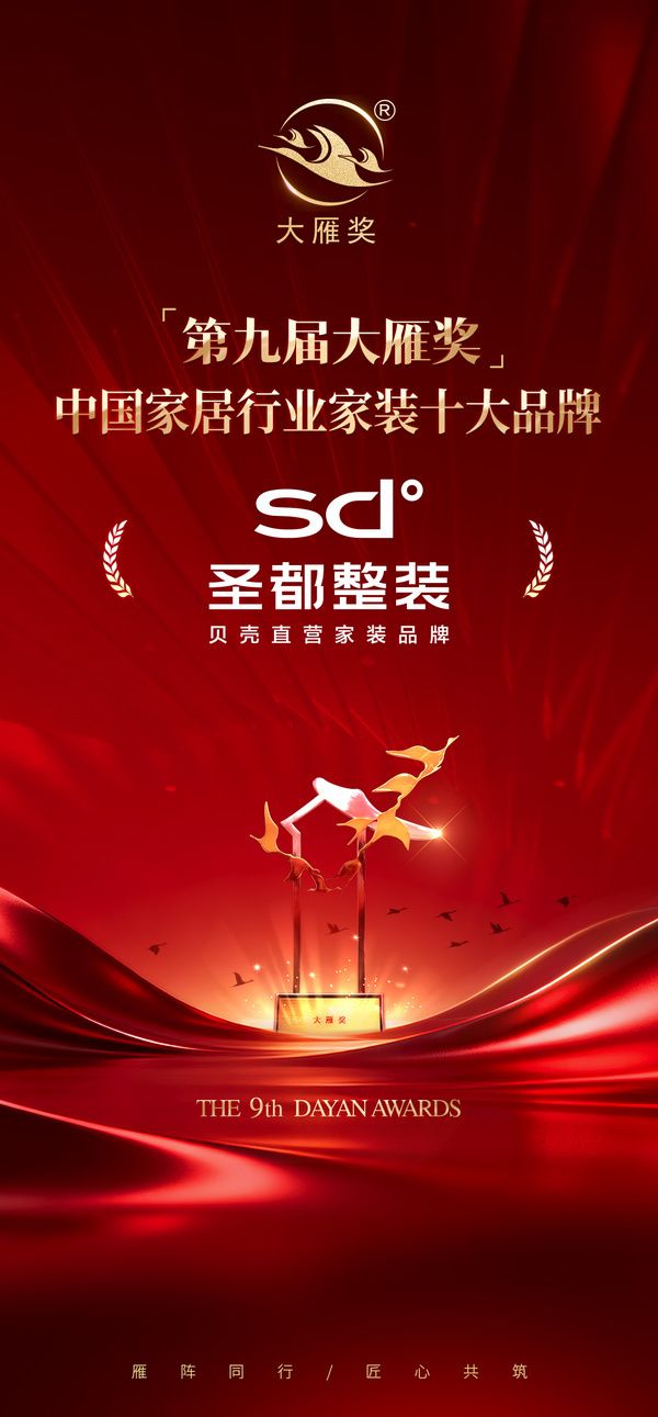 喜报!圣都整装荣膺 「第九届大雁奖·中国家居行业家装十大品牌」奖项