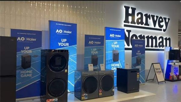 The Good Guys仅是主流渠道主动选择与海尔合作营销的一个缩影。澳网赛事期间,墨尔本乃至全澳范围内,几乎所有颇具规模的家电连锁店面门口,都摆放着醒目的海尔澳网联名海报。部分门店更创新升级展示形式,将海尔畅销款制冰冰箱、洗衣机等产品摆放在门口核心引流区。例如在Harvey Norman等连锁店,门店专门开辟出数十平米的展区,将联名海报与畅销产品并排陈列,吸引顾客拍照打卡,将品牌热度转化为门店人气。