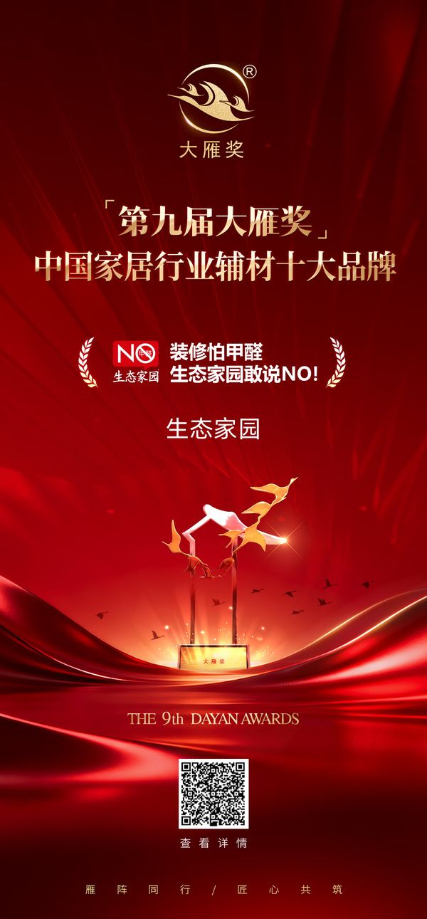 喜报!生态家园荣获辅材类「2023消费者信赖十大家居品牌」