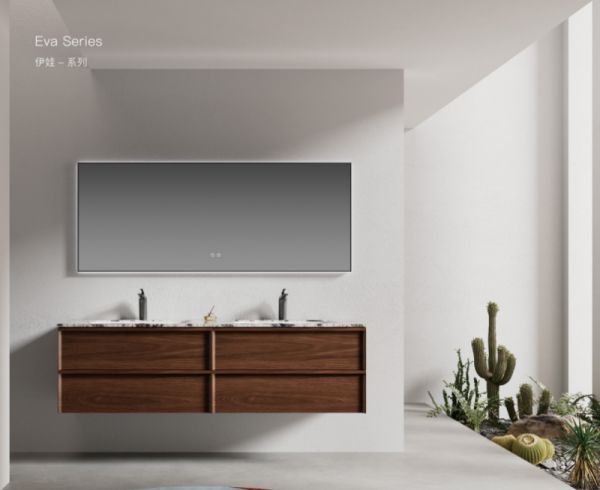 作为品牌经典高端系列,线条利落大气,搭配天然大理石,美国杜邦可丽耐,岩板一体台盆,质感拉满。柜体采用实木多层板,防水防潮性能优异,五金配件全套升级,承重与顺滑度更出色。双台盆设计适配大户型或双人卫浴场景,镜柜为嵌入式智能款,内置分区收纳格与照明系统,兼顾颜值、实用与智能,适合追求高端生活品质的家庭。