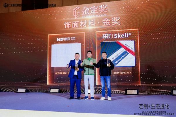住建部将“安全、舒适、绿色、智慧”列为“好房子”四大核心基准,家居材料的环保性与适配性直接决定居住品质。中同爱邦以电子束(EB)固化技术为“绿色心脏”,以极致美学为外在表达,将环保性能与空间设计深度融合,不仅为高端家装、适老康养、儿童空间提供更优材料选择,更为定制家居行业探索“好房子”建设路径提供了实践范本。 此次广州定制家居展,上海融盛和新材料旗下核心产品--中同爱邦-Skeli®电子束(EB)烤漆PMMA,在2025-2026定制家居产业大奖金定奖的评选中,斩获“饰面材料·金奖”,这代表着核技术民用化在家居领域的应用得到了权威机构的认可,也标志着中国定制家居材料正式迈入“核级环保”新时代。未来,上海融盛和新材料将持续深耕定制家居产业,以科技赋能美好生活,为“好房子”建设贡献更多创新力量。