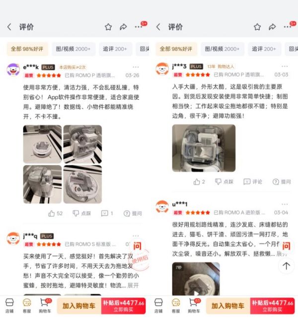 正因如此,在各大数码社区和电商平台上,大疆在扫地机品类里的避障与识别能力评价几乎是公认的行业天花板。大量真实用户的长评都在惊叹:「大疆的避障简直像长了脑子」。
