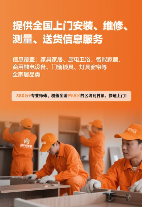 这四组数据背后,是平台对家具安装服务全链路的数字化改造。从下单、派单到完工验收,全程可视化追踪;师傅资质、服务评价透明可查;售后问题平台兜底,商家风险可控。